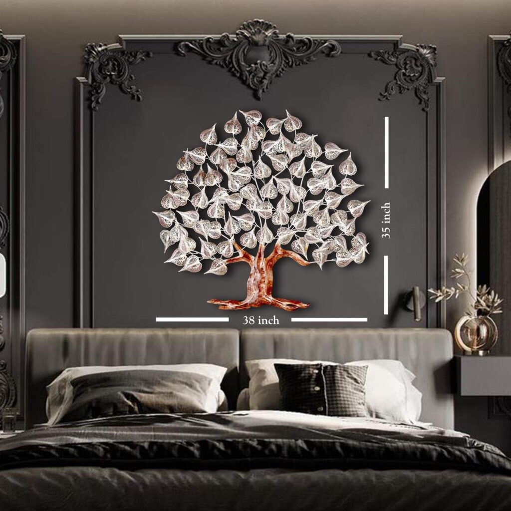 Iron White Peepal Leaf Tree Wall Art Hanging & Decorative Mounted Art Sculpture for Home Decor/Living Room/Bed Room