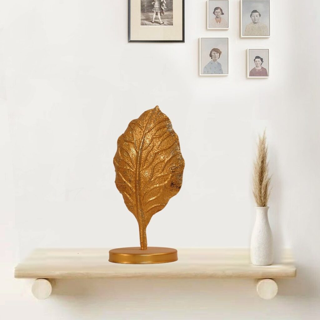 Wooden Showpiece for Home Decor, Office Desk,Living Room, Bedroom, Dining Room, Christmas, New Year Gifting, Table Decor Single Golden Leaf