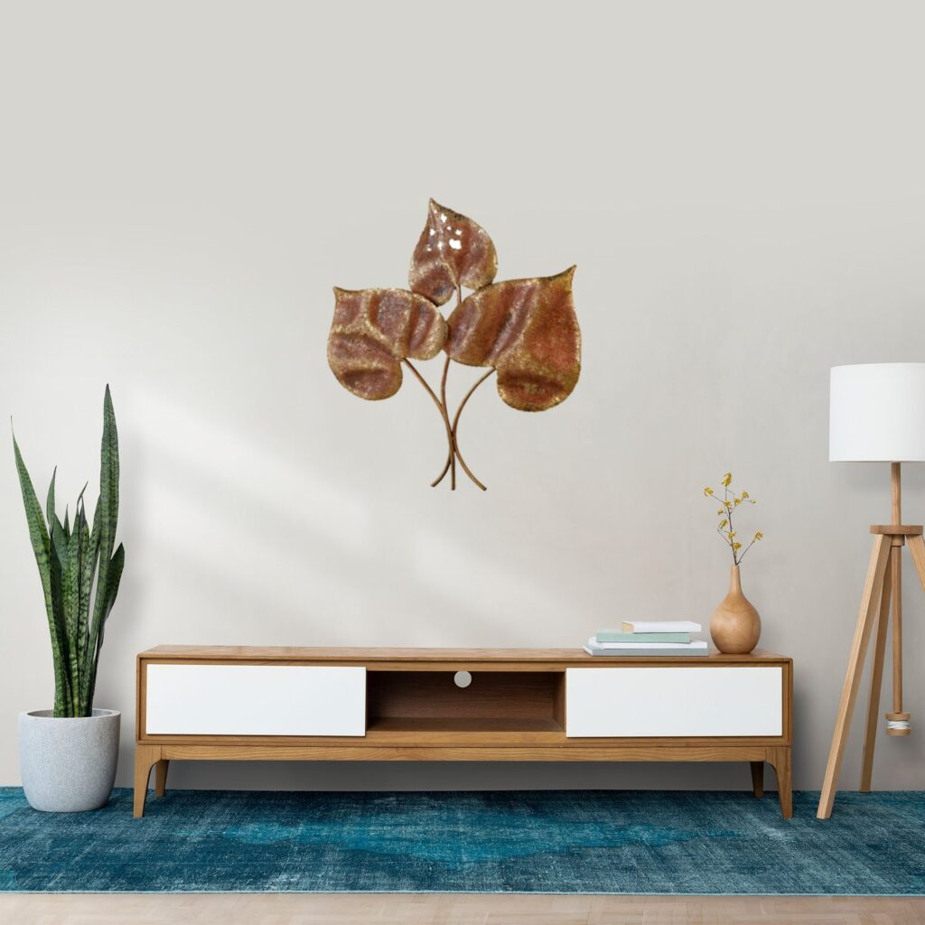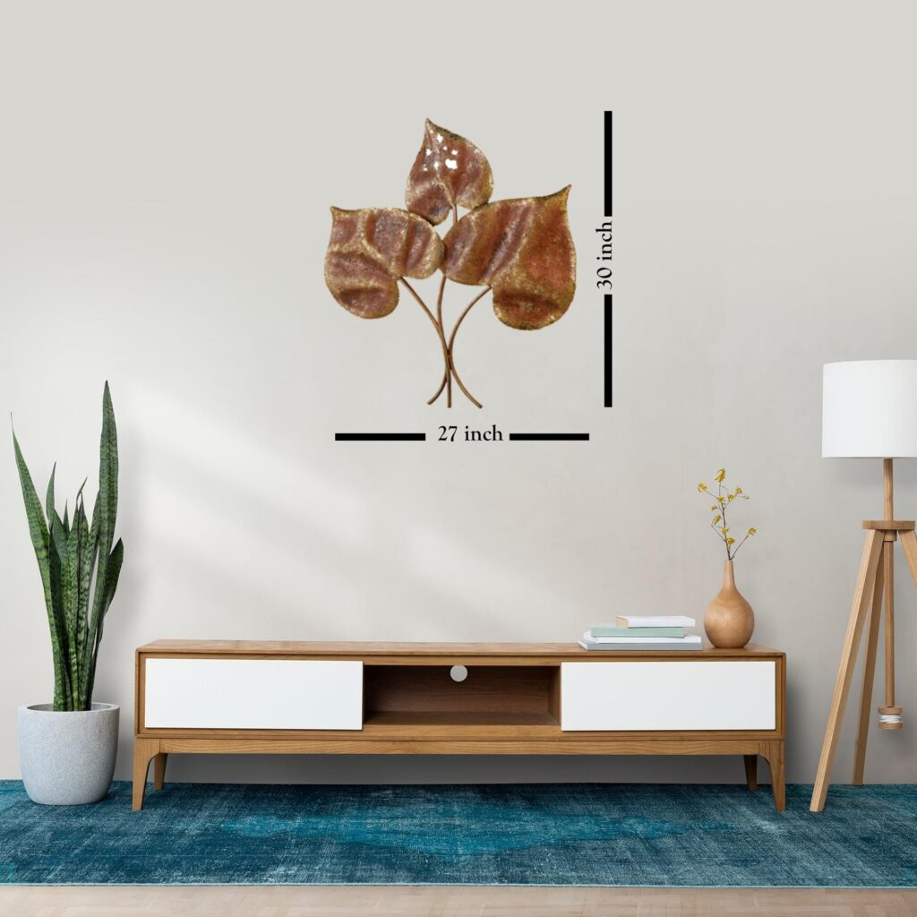 3 Copper Peepal Leaf Wall Art Decorative Wall Plate,Wall Decor Plates for Home & Office Decoration