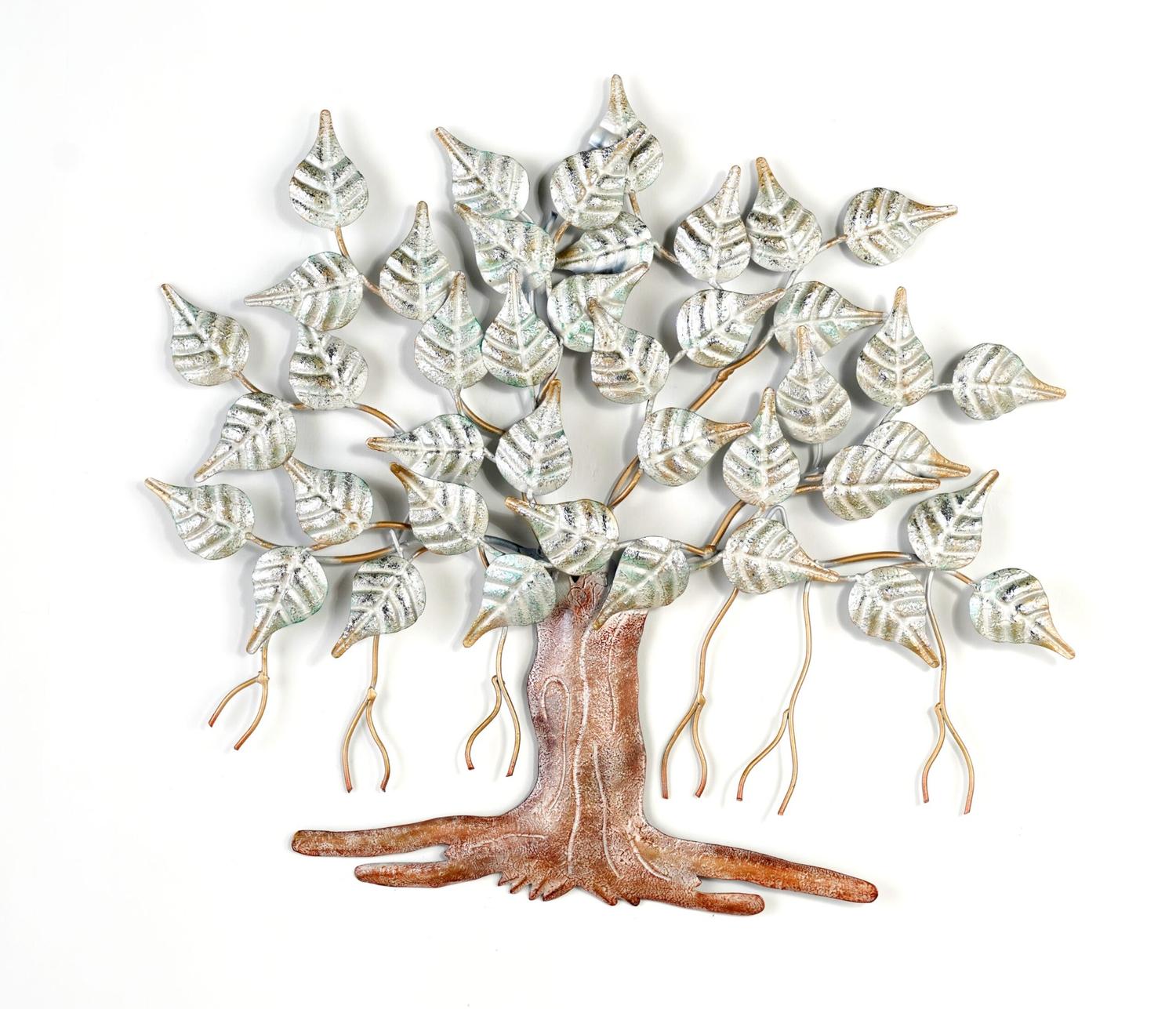 Iron White Peepal Leaf Tree Wall Art Hanging & Decorative Mounted Art Sculpture for Home Decor/Living Room/Bed Room
