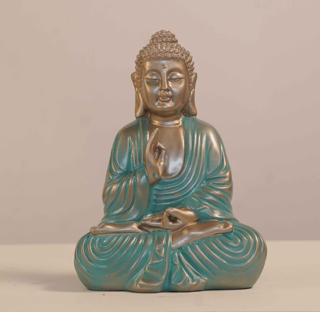 4 reviews for Meditating Buddha Idols for Home Decor Ashirwad Mudra Firozi Big Size Office Desk Table Outdoor Resin Statues L W H ( 47*33*54) cm