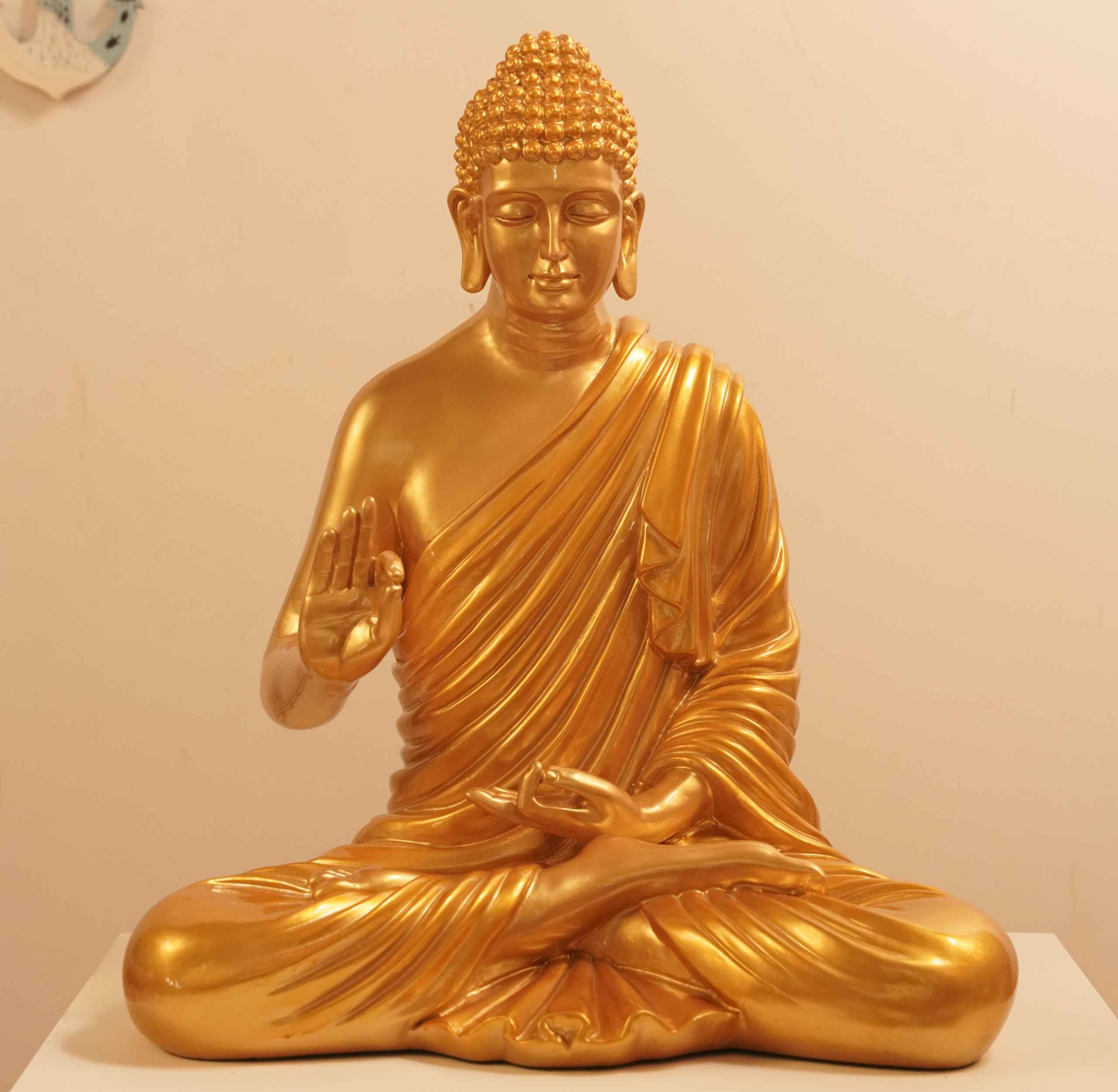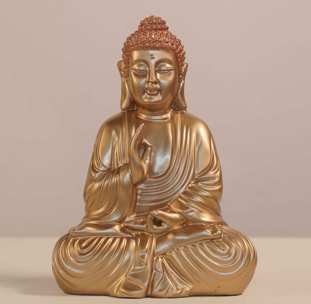 2 reviews for Meditating Buddha Idols for Home Decor Ashirwad Mudra Gold Big Size Office Desk Table Outdoor Resin Statues L W H ( 47*33*54) cm